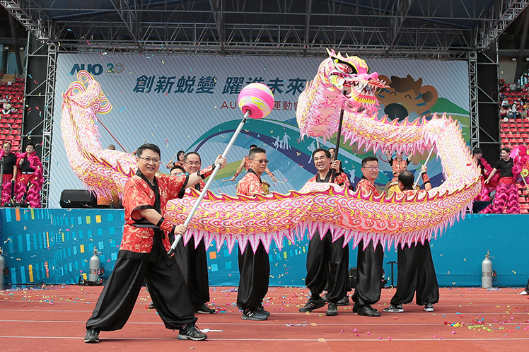 AG旗舰厅 (中国大陆) 20 周年運動會高階主管龍獅戰鼓躍未來表演 |